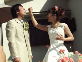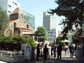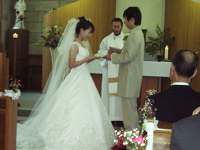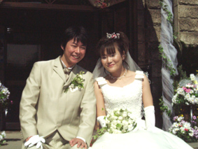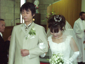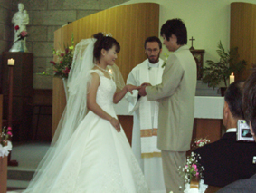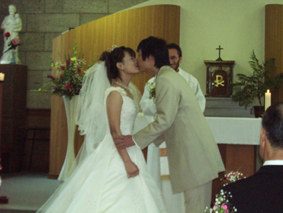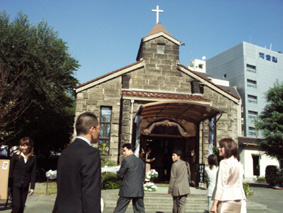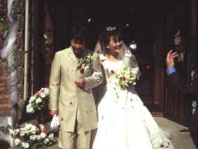 | 2003年10月25日 カトリック北野教会 当日は最高に良い天気! たくさんの人々に祝福されて2人は結婚しました |
