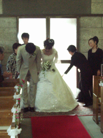 | まもなく式が始まります みなさんいそいそと教会内へ・・・ なぜか緊張しますね〜!?(笑) |