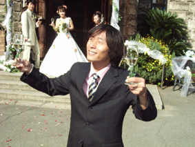 緊張した面持ちの新郎『よこちゃん』 こんな顔は初めて見るな! |